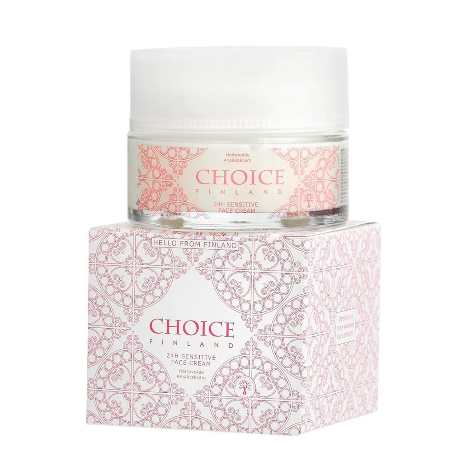 24h Sensitive kasvovoide (Norm. 45€). Kosteuttaa ja hoitaa kosteusköyhää ihoa. Kehitetty erityisesti atooppiselle ja herkälle iholle sekä tuoksuallergikoille. Aloen lehtiuute sekä suomalainen koivunmahla rauhoittavat ja kosteuttavat ihoa. Avokadoöljy sisältää hyödyllisiä rasvahappoja, jotka pehmentävät ja ravitsevat kosteusköyhää ihoa. Upea lupiinproteiini kiinteyttää ja aktivoi kollageenituotantoa. Hittituote kosteusköyhälle iholle sekä tuoksuallergikoille. Käyttö: Levitetään aamuin illoin kasvoille ja kaulalle seerumin käytön jälkeen. 24h Sensitive kasvovoide on CHOICE Finland hittituote!